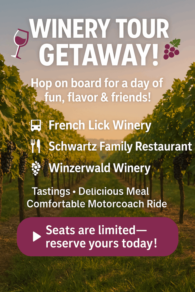 Include: Transportation Tickets Meet Motor Coach at 3535 North Green River Road Evansville IN 47715To sign up at https://servantstravel.pro/trip-preregistration/